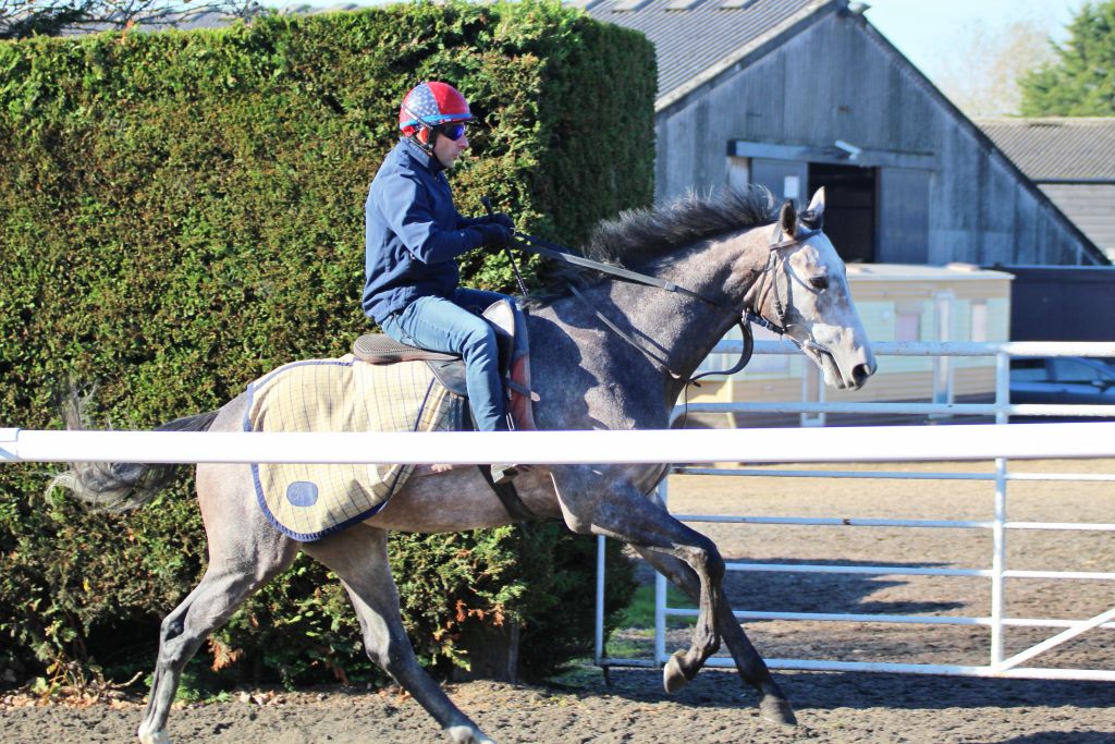 DON’T LOOK DOWN, the new addition to Solario Racing, is starting to find his feet at Harper Lodge Farm, judging by how he cantered in the outside ring yesterday!