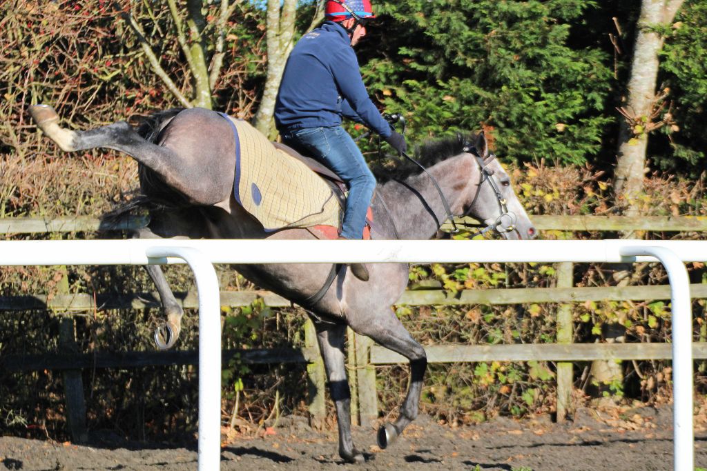 He threw in the odd buck, kicking out against the rail which prompted the trainer’s father, a certain Mr Ken Ivory to observe: “The invoice will be in the post for the damage to the rail.” In fact no damage was done but there was no doubting the enthusiasm of Don’t Look Down, who looks to have all the attributes of what Dean Ivory has called, “a proper horse.”