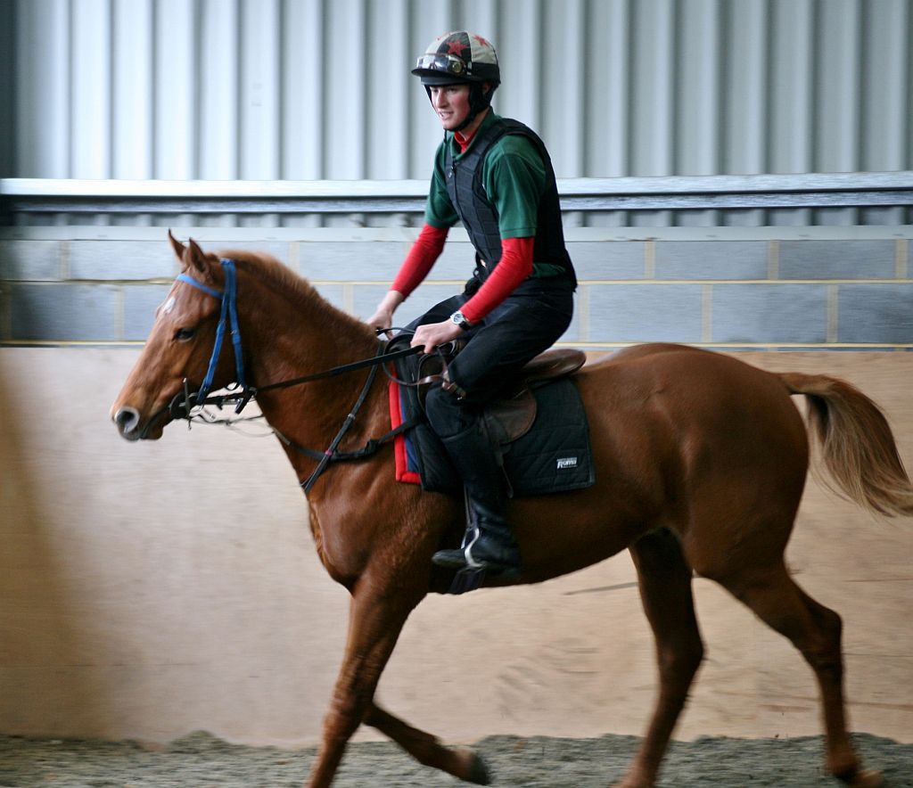 Zac Baker, the regular partner of the colt, lunged him for a few minutes before getting on him totally unaided. The colt just stood as good as gold as Zac jumped up, leaned across him and then sat in the saddle. If this was not impressive enough, there was yet more to come.