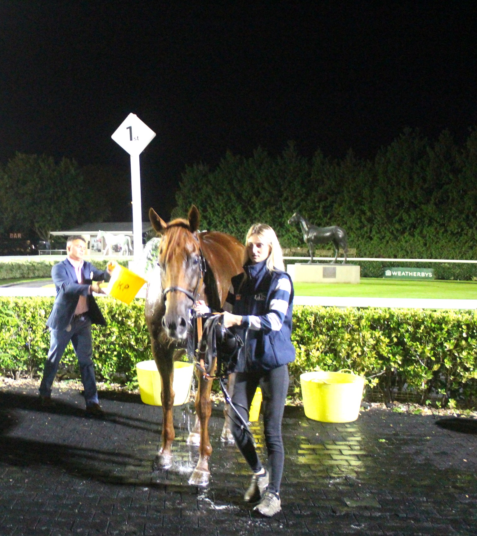 The 6/1 shot, fourth in the betting, had gone close 26 days previously at Leicester on the turf, when beaten a neck also under three pound claimer, Luke Catton. This time the pair went one better!